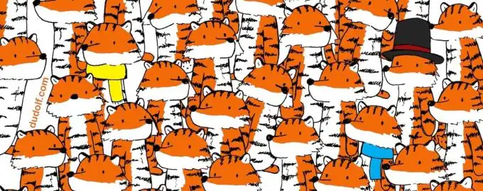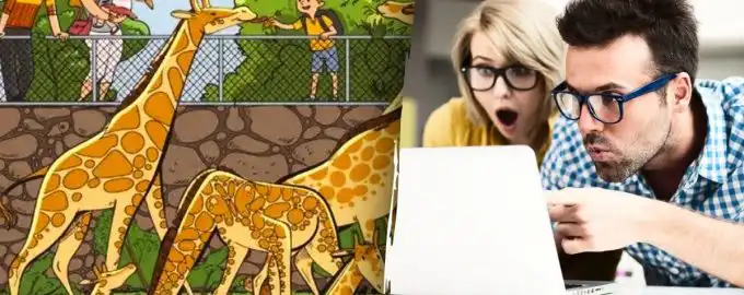 Ši optinė iliuzija paslėpė du objektus – drugelį ir ananasą – tarp žirafų ir žiūrovų. Jūsų smegenys turės atsijoti triukšmą ir sutelkti dėmesį į spalvų