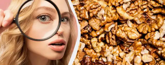 Šiame paveikslėlyje tarp graikinių riešutų paslėpta medinė šachmatų figūrėlė – riteris. Jūsų užduotis – ją aptikti per 10 sekundžių. Paslaptis slypi tame