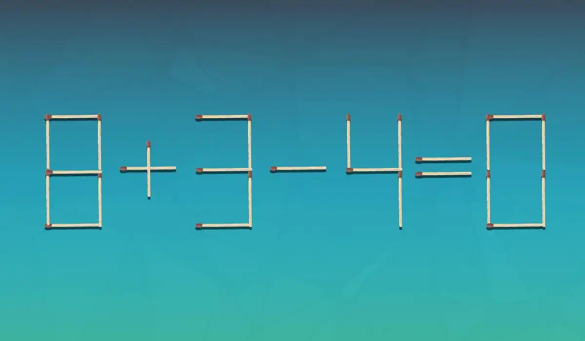 Šioje degtukų galvosūkyje lygybė 8+3-4=0 yra neteisinga. Norint ją pataisyti, galima perkelti tik vieną degtuką. Sprendimas slypi ne aritmetikoje, o geometrijoje – reikia pakeisti vieno skaičiaus formą, kad jis taptų kitu.