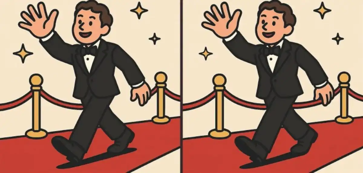 Ar jaučiatės pasiruošę išbandyti savo dėmesingumą ir regėjimo aštrumą? Šis klasikinis „Find the Difference“ iššūkis yra puiki smegenų mankšta. Prieš jums – du paveikslėliai su vyru, einančiu raudonu kilimu. Jie atrodo kaip dvi vienodos nuotraukos, tačiau klaidingai. Tarp jų paslėpti trys nedideli, bet aiškūs skirtumai. Jūsų tikslas – juos visus aptikti per vos 91 sekundę. Tai ne tik linksmas laiko praleidimo būdas, bet ir puiki treniruotė smegenų lanksčiui bei koncentracijai.