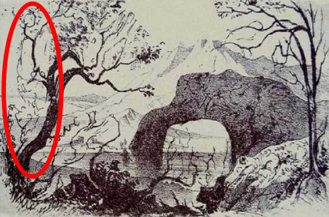 Laikas atskleisti paslaptį. Žmogaus siluetas yra paslėptas **kairėje** paveikslo pusėje. Tai nėra atskiras objektas, o tamsi medžio kamieno dalis, kuri sudaro žmogaus galvos ir veido profilį. Atrodo, lyg žmogus stovėtų atsiremęs į medį, o jo kontūrai susilieja su medžio raižu. Dažnai jį puikiai atskleidžia šviesesnė linija, primenanti pypkę, kurią jis laiko burnoje. Tai yra klasikinis kamufliažo ir figūros-fono santykio pavyzdys.