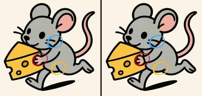 Ar jaučiatės pasiruošę smegenų treniruotei? „Rask skirtumą“ galvosūkiai yra klasika, puikiai tinkanti tiek pradedantiesiems, tiek patyrusiems galvosūkių mėgėjams. Jūsų užduotis šiandien – atidžiai išnagrinėti du vaizdus su pelėmis ir sūrio gabalėliais. Nors piešiniai atrodo vienodi, juose slypi trys nedideli, bet aiškūs neatitikimai. Laikas pradeda skaičiuoti – turite tik 31 sekundę!