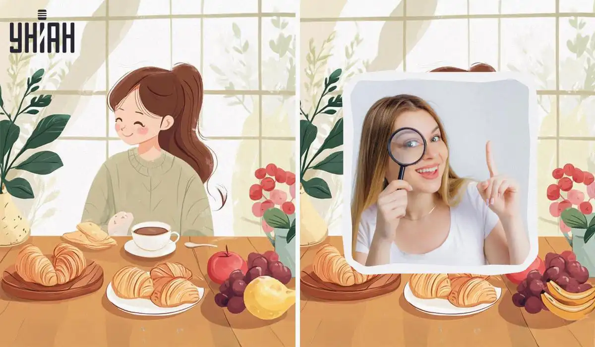 Įsivaizduokite ramų rytą. Mergina sėdi prie stalo savo šviesioje virtuvėje, mėgaujasi kava ir gardžiais pusryčiais. Dvi nuotraukos atrodo kaip dvi vienodos akimirkos, užfikuotos viena po kitos. Tačiau tarp jų slypi keturi nepastovumai. Jūsų užduotis – juos rasti per vos 11 sekundžių. Ar jūsų smegenys ir akys pakankamai greitos, kad įveiktų šį laiko limitą?