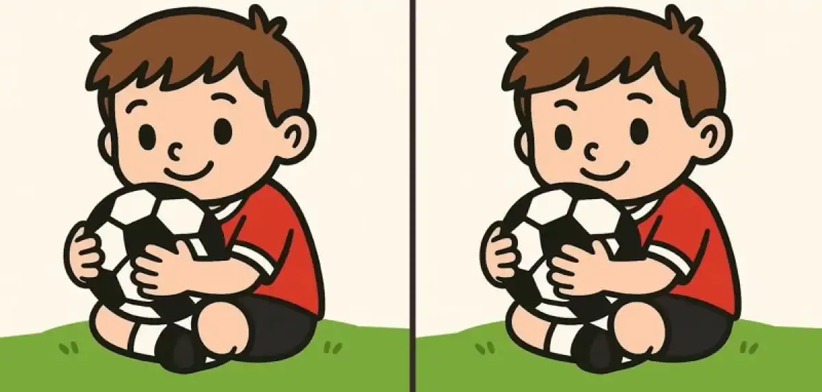 Pažvelkite į paveikslėlį žemiau. Matote berniuką, kuris žaidžia su futbolo kamuoliu. Dvi nuotraukos atrodo kaip dvi vandens lašai. Tačiau jose yra trys nedideli, bet svarbūs skirtumai. Jūsų misija – juos aptikti per vos 49 sekundes. Tai yra tikras iššūkis jūsų stebėjimo įgūdžiams!