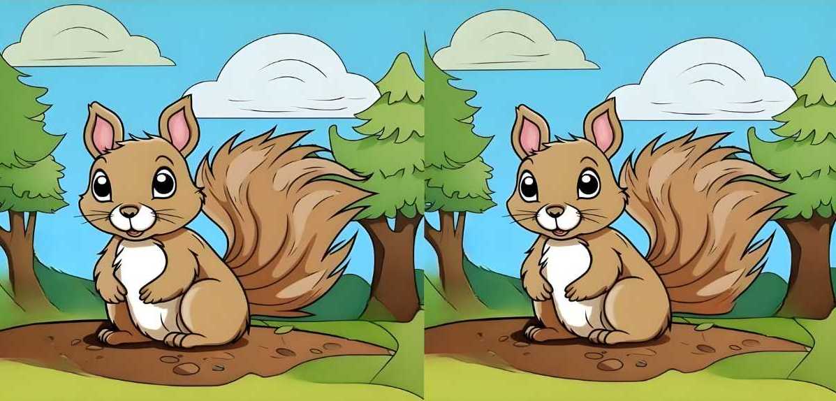 Šis galvosūkis – tikras smegenų treniruoklis dėmesiui! Jums pateikiami du beveik identiški voverių paveikslėliai, tačiau juose paslėpti trys subtilūs skirtumai. Jūsų misija – juos surasti per 25 sekundes. Paslaptis – žiūrėkite ne į visumą, o į smulkius elementus.
