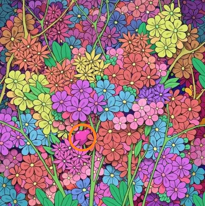 Ar jaučiatės pasirengę išbandyti savo regėjimo aštrumą ir dėmesio koncentraciją? Ši optinė iliuzija – tikras išbandymas net patyrusiems galvosūkių mėgėjams. Prieš jus – gėlių laukas, spalvinga ir gyva mozaika. Tačiau tarp šių daugybės žiedų ir lapų viena detalė visiškai netelpa į bendrą vaizdą: paprasta širdies formos figūrėlė. Jūsų tikslas – ją aptikti vos per 11 sekundžių. Skubėkite, laikas jau pradėjo skaičiuoti!