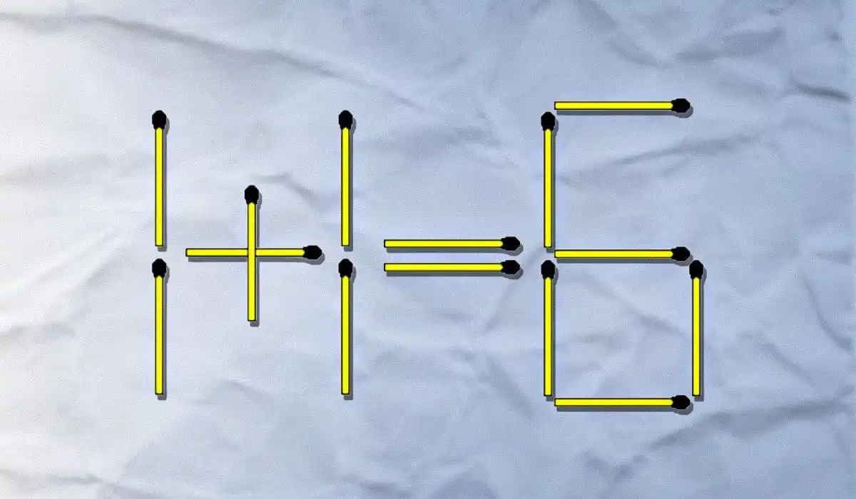 Šiame degtukų galvosūkyje jums reikia pakeisti lygtį 1+1=6, kad ji taptų teisinga, bet sąlyga yra griežta: galite perkelti tik vieną degtuką ir dar vieną turite visiškai pašalinti. Sprendimas slypi tame, kad vieną skaičių galima paversti kitu, o ženklą – transformuoti.