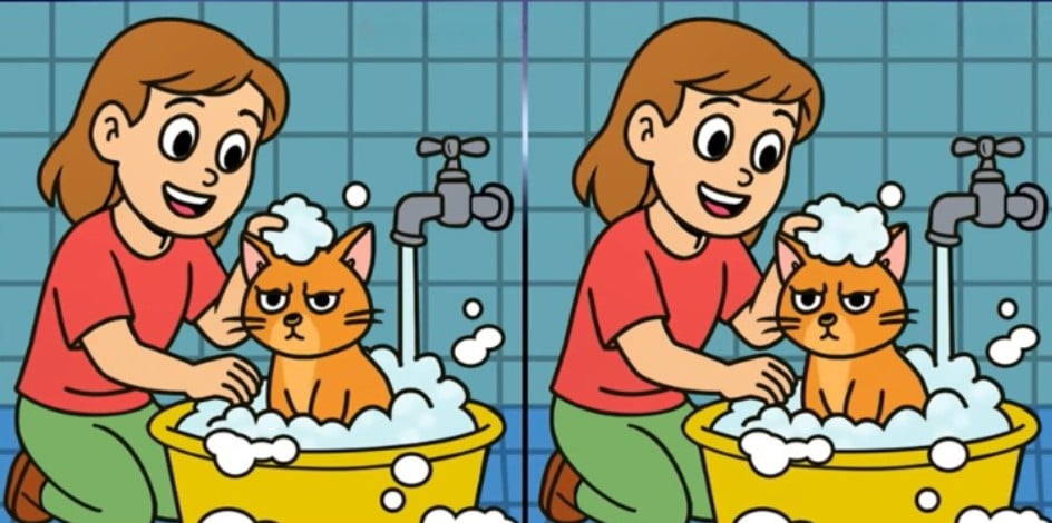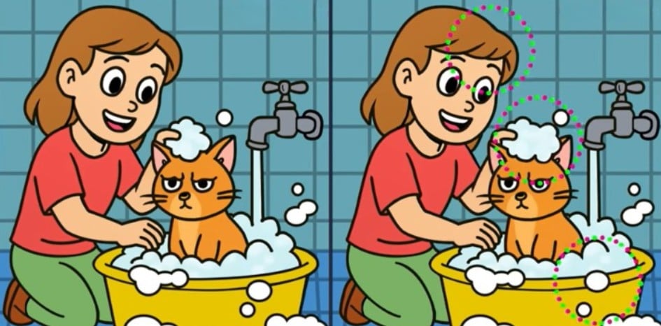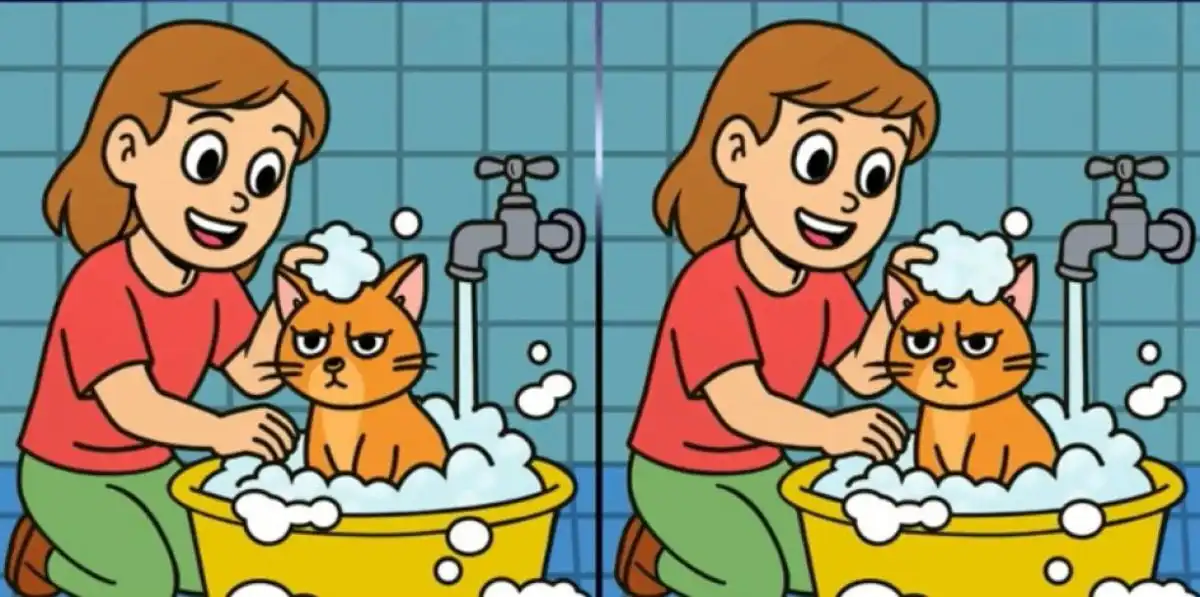 Šis galvosūkis – tikras dėmesio ir koncentracijos išbandymas. Dvi beveik identiškos merginos su kate slepia tris subtilius skirtumus. Jūsų tikslas – juos surasti per 33 sekundes. Paslaptis slypi smulkmenose: spalvos atspalvyje, objekto formoje ar detalės padėtyje.