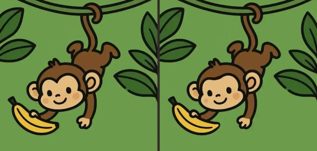 Galvosūkiai „Rask skirtumus“ yra klasika, puikiai tinkanti smegenims treniruoti. Jie verčia sustoti, atsitraukti nuo kasdienio tempo ir visiškai pasinerti į vaizdo analizę. Ši užduotis atrodo paprasta, kol nepabandai ją atlikti ribotu laiku – tada atsiranda tikras iššūkis. Prieš mus yra du paveikslėliai, vaizduojantys linksmą beždžionę, kabojančią ant medžio šakos. Jie atrodo kaip dvi vienodos nuotraukos, bet klaida! Tarp jų slypi trys neatitikimai. Ar galite juos visus aptikti per 23 sekundes?