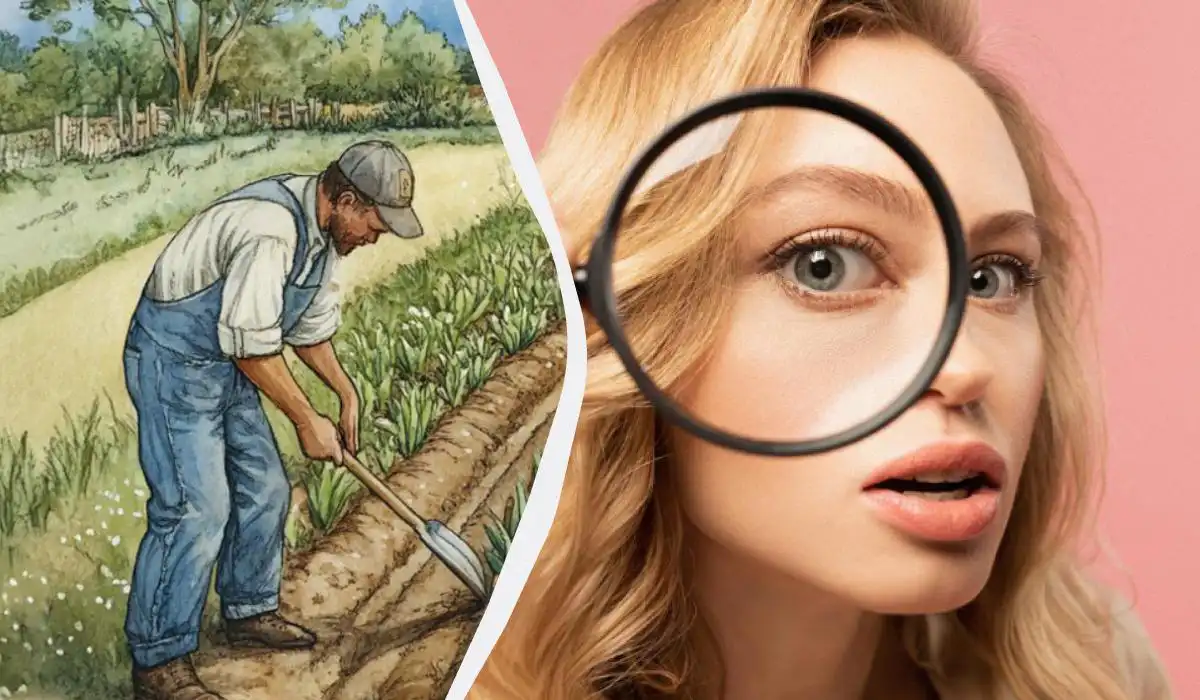 Įsivaizduokite ramų vasaros dieną. Trys vyrai dirba priešais namą su raudonu stogu. Vienas pjauna žolę pjautuvu, kitas krauna šieną šakėmis. O trečiasis… na, trečiasis atrodo, kad taip pat sunkiai dirba. Bet ar tikrai? Jūsų užduotis – per keturias sekundes surasti loginę neatitiktį šiame paveikslėlyje.