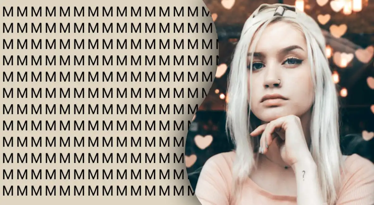 Šioje vizualinėje galvosūkyje tarp daugybės identiškų raidžių „M” paslėpta viena raidė „W”. Jūsų užduotis – ją aptikti per 7 sekundes. Paslaptis slypi tame, kad „W” yra ne tik kita raidė, bet ir veikia kaip optinė apgaulė, priverčianti jus ieškoti neformuojant, o atpažinant.