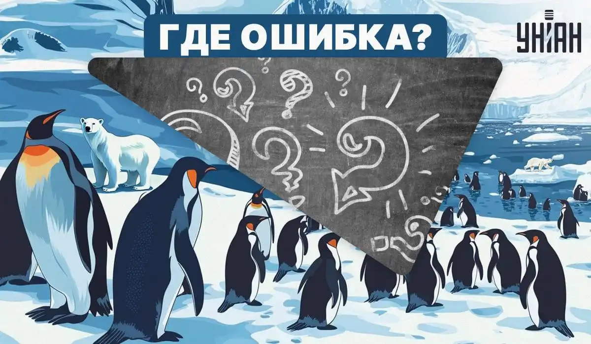 Šiame paveikslėlyje su pingvinais slypi viena didelė geografinė klaida, kurią galima pastebėti tik atidžiai apgalvojant, kur gyvūnai iš tikrųjų gyvena. Pagrindinis raktas – prisiminti, kurie gyvūnai gyvena kuriuose Žemės poliuose.