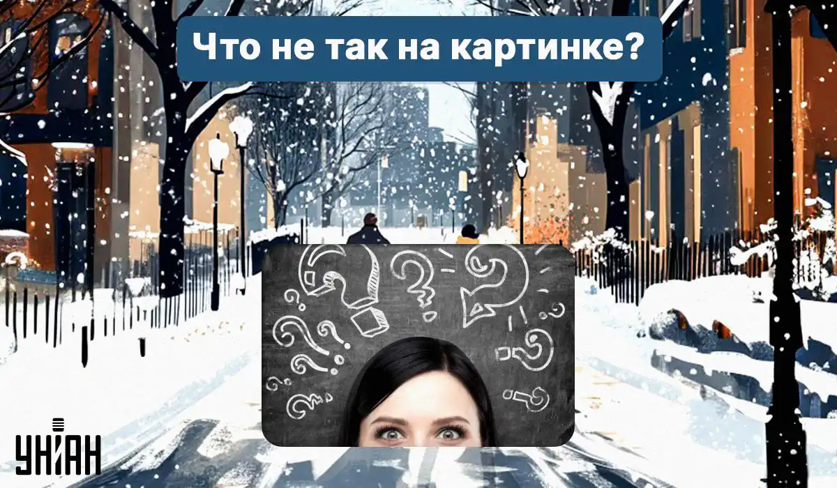 Šiame apsnigto miesto paveikslėlyje slypi subtili klaida, susijusi su pėdsakais sniege. Norint ją rasti, reikia atsukti dėmesį į tai, kas turėtų būti, bet nėra, ir į tai, kas yra, bet neturi logikos.