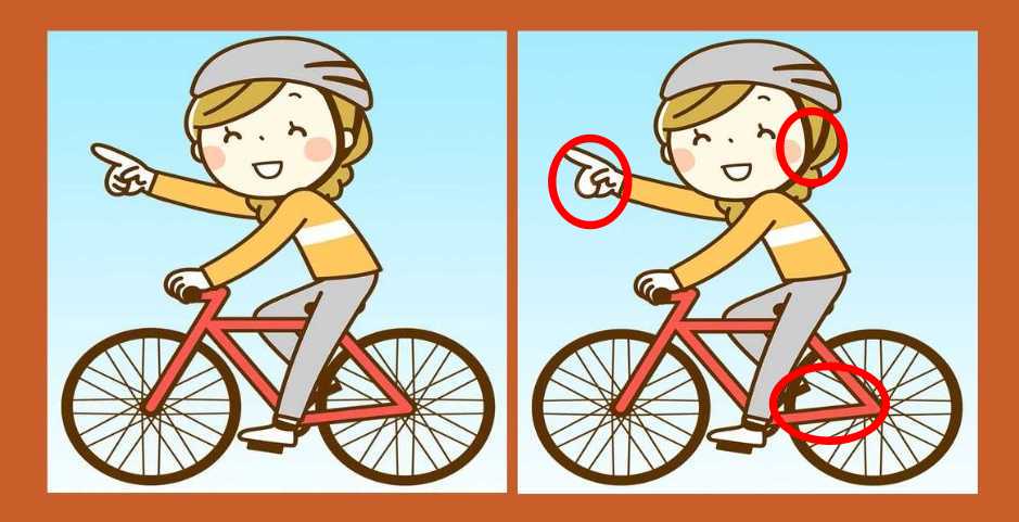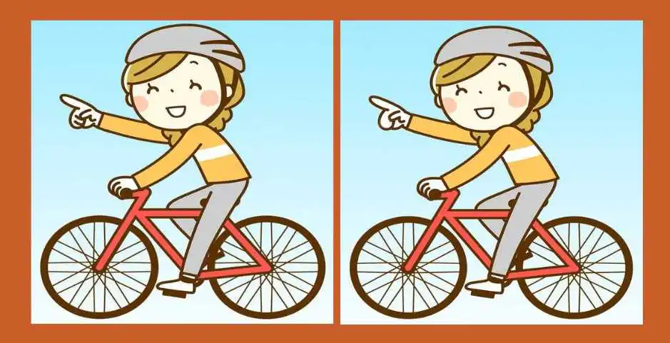 Šioje dėlionėje reikia surasti tris subtilius skirtumus tarp dviejų iš pirmo žvilgsnio identiškų piešinių su mergina ant dviračio. Pasiruoškite patikrinti savo dėmesingumą ir stebėjimo įgūdžius – atsakymai slypi smulkmenose!