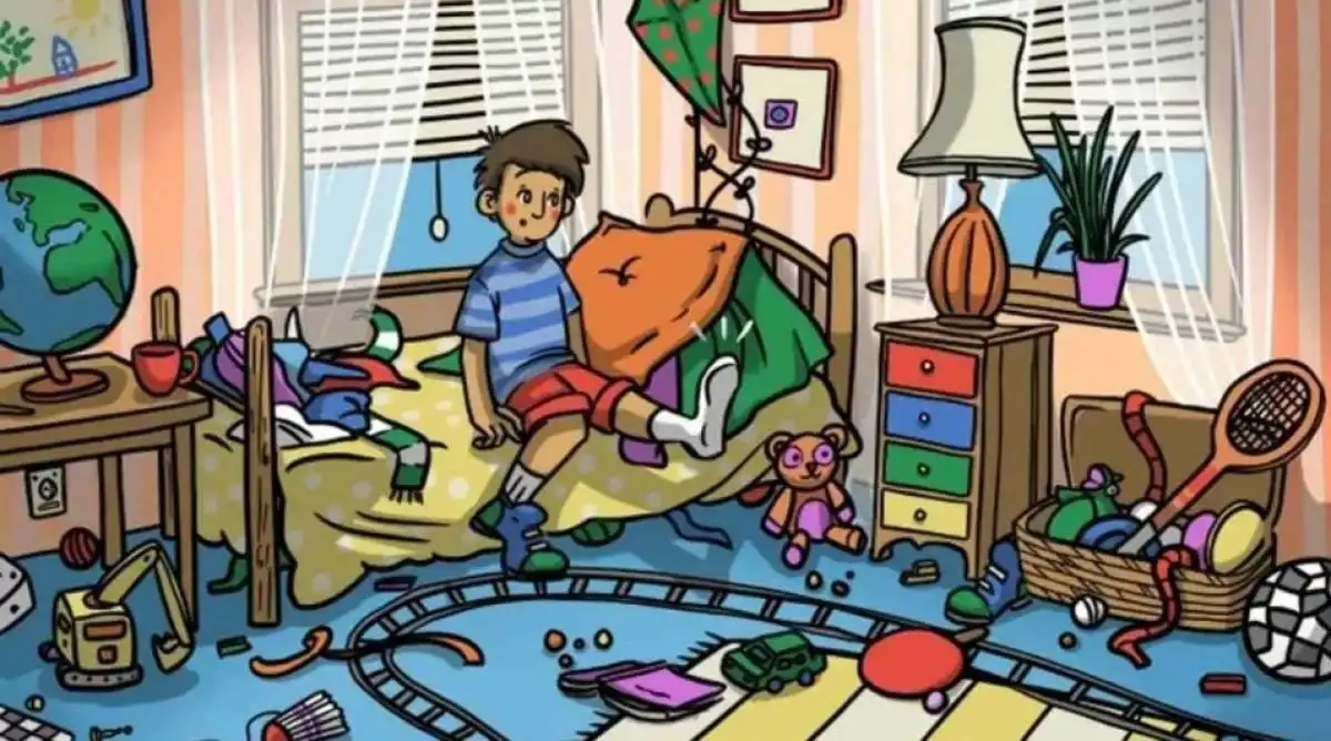 Įsivaizduokite, kad įžengiate į netvarkingą kambarį. Ant sofos, kėdžių ir grindų išmėtyta daugybė daiktų: krepšiai, dėžės, knygos, net kamuolys. Jūsų užduotis – greitai, per 5 sekundes, surasti vieną paslėptą batą. Laikas pradeda skirtis. Ar jūsų dėmesys ir erdvinė vizualizacija išlaikys iššūkį?