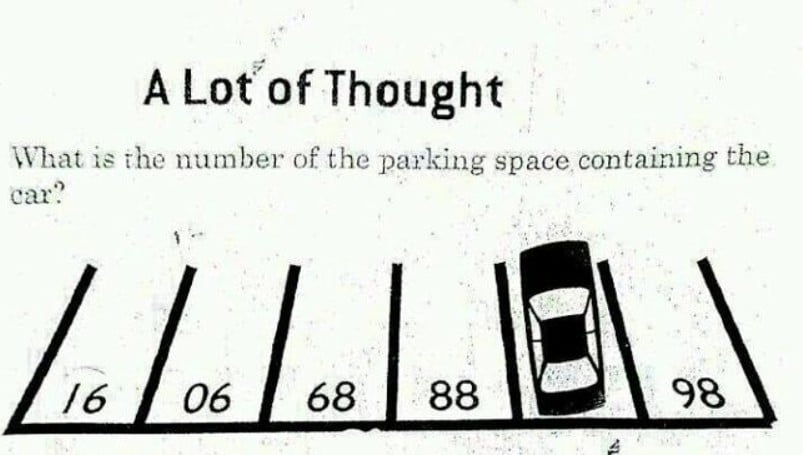 Įsivaizduokite, kad esate komisijoje, kuri vertina šešiametukus, norinčius įstoti į prestižinę mokyklą. Jiems duodama 20 sekundžių išspręsti vieną uždavinį. Jūs, suaugęs, žiūrite į jį ir pradedate galvoti apie algebrą ar sudėtingas sekas. Bet štai esmė – vaikai dažnai tai išsprendžia greičiau už jus. Kodėl? Nes jie dar neįpratę per daug komplikuoti paprastų dalykų. Šiame paveikslėlyje pavaizduota automobilių stovėjimo aikštelė su šešiomis vietomis. Penkiose matomi jų numeriai: 16, 06, 68, 88, 98. Šeštoje stovi automobilis, užstojantis numerį. Jūsų užduotis – nustatyti, koks skaičius slepiasi po automobiliu.