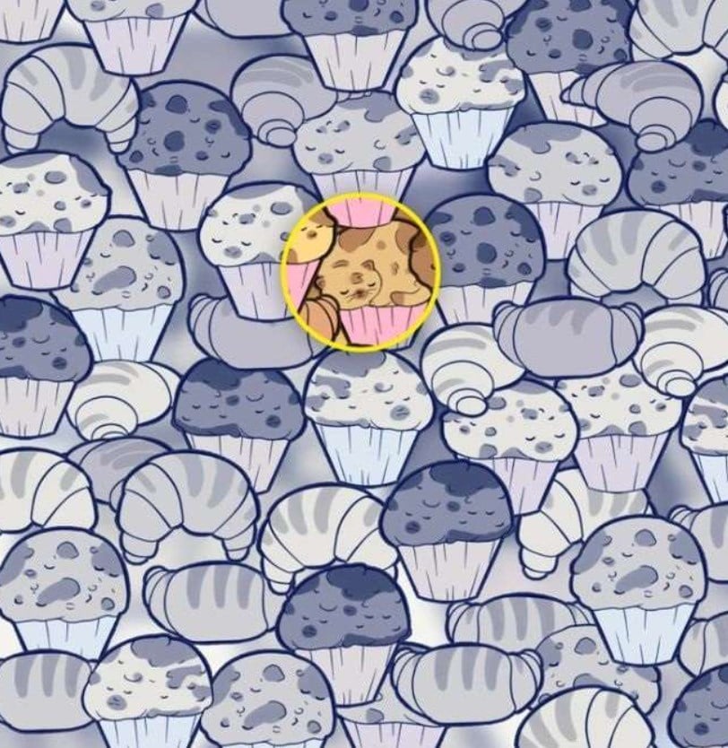 Šio galvosūkio esmė – tarp daugybės panašių keksiukų, kurie yra sukurti kaip optinė apgaulė, reikia atrasti pasislėpusį katiną. Pagrindinis raktas – ieškoti mažų detalių, kurios nutraukia monotonišką keksiukų raštą, ypač viršutinėje paveikslėlio dalyje.