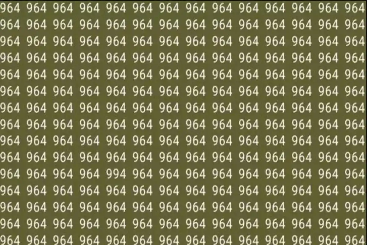 Įsivaizduokite, kad žiūrite į sieną, visiškai padengtą vienodomis plytelėmis. Jūsų smegenys automatiškai suvokia jas kaip vientisą, monotonišką raštą. Tačiau viena iš tų plytelių – kitokia. Būtent toks iššūkis ir laukia jūsų šiame vizualiniame teste. Jums pateikiamas paveikslėlis, pilnas skaičių „964“, išdėstytų eilėmis. Ir tik vienoje vietoje, tarp šios vienodų skaičių jūros, pasislėpęs skaičius „994“. Ar galite jį aptikti greičiau nei per 10 sekundžių?
