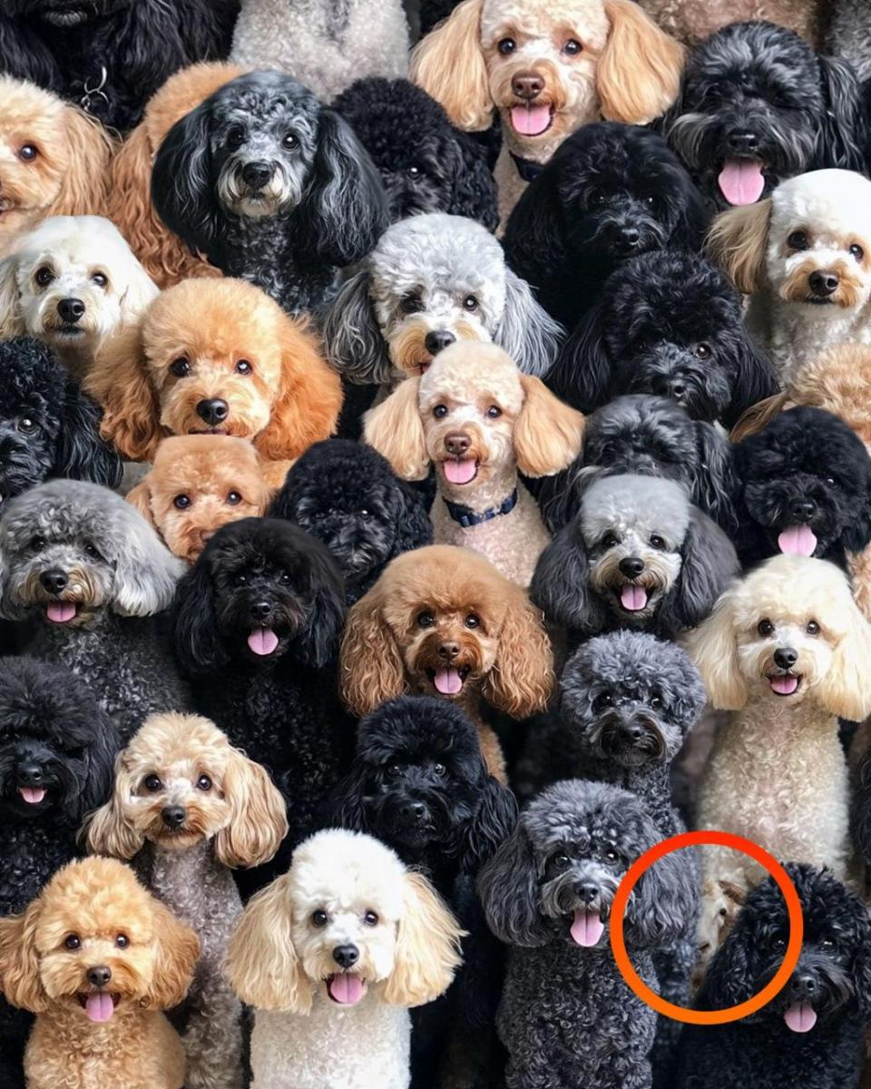 Dabar žiūrėkite į paveikslėlį žemiau. Jūs turite 7 sekundes, kad surastumėte vienintelę avį tarp daugybės šunų. Pasiruošę? Pradėkite!