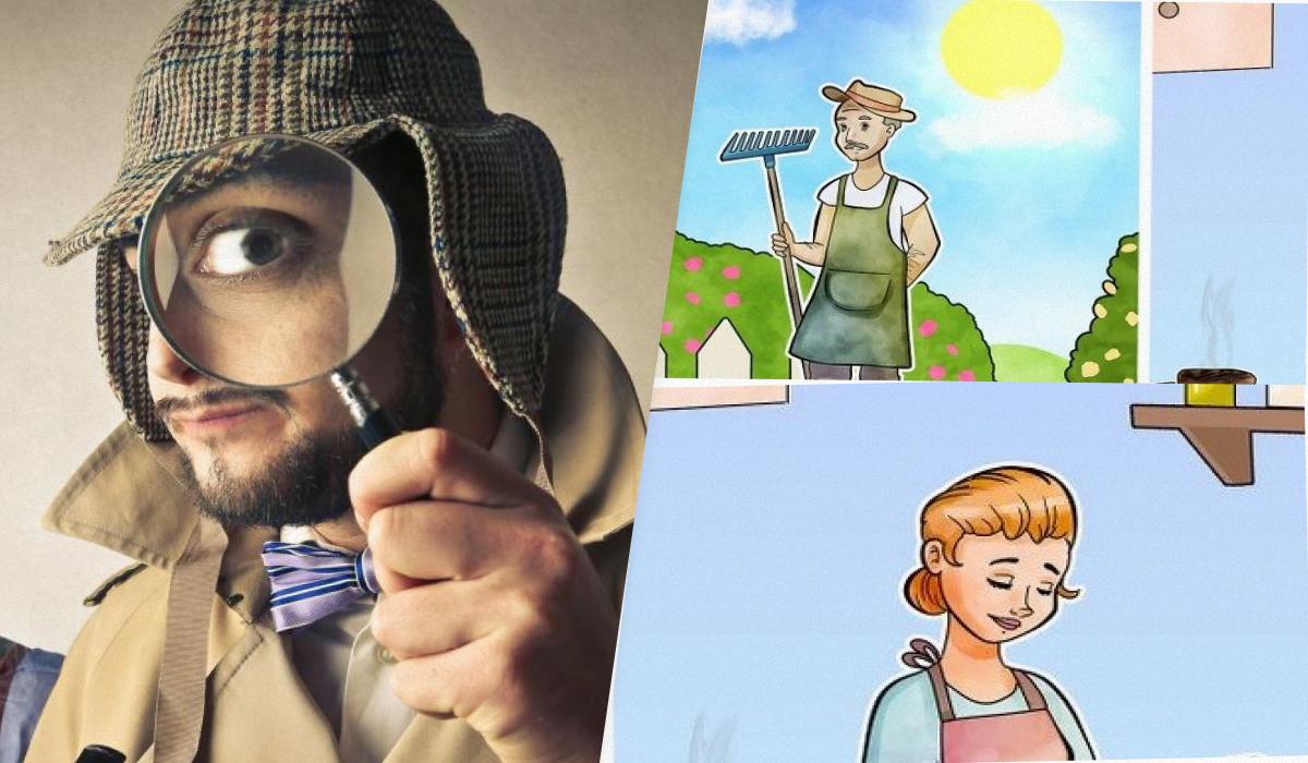 Įsivaizduokite, kad esate detektyvas dideliame dvare. Vyksta tyrimas – kažkas pavogė vertingą daiktą. Pagrindiniai įtariamieji yra du žmonės: patikimas sodininkas ir rimtas virėjas. Abu jie tvirtina, kad visą rytą sunkiai dirbo: sodininkas laistė gėles, o virėjas kepė pyragą virtuvėje. Jų pasakojimai atrodo patikimi. Bet jūs žinote, kad vienas iš jų meluoja. Jums duota nuotrauka, kurioje užfiksavote abu darbo metu. Jūsų užduotis – atidžiai ją išnagrinėti ir rasti logišką neatitikimą, kuris išduos melagį.