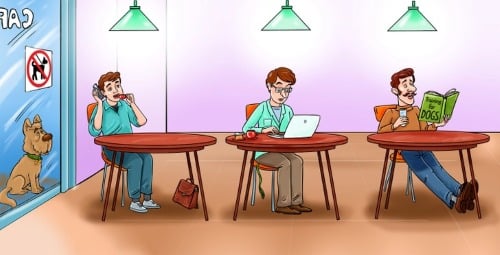 Įsivaizduokite ramią kavinės vakaro atmosferą. Prie trijų skirtingų stalų sėdi trys vyrai, atrodo, visiškai pasinėrę į savo pokalbius ar mintis. Tuo tarpu prie įėjimo durų, šviesioje gatvėje, kantriai sėdi gražus šuo. Jis neįeina vidun, nes taisyklės to nedraudžia. Jis tiesiog laukia. Klausimas kyla natūraliai: kuris iš šių vyrų yra to šuns šeimininkas? Laiko atsakyti – vos 7 sekundės. Šis laiko limitas verčia veikti instinktyviai, pasikliauti pastebėjimu, o ne ilga analize.