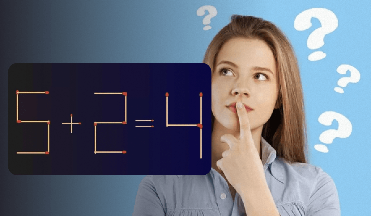 Šioje galvosūkio nuotraukoje matote neteisingą lygybę, sudarytą iš degtukų: 5 + 2 = 4. Paslaptis slypi viename degtuke – perkėlus jį į tinkamą vietą, lygybė tampa matematiškai teisinga. Ar galite suprasti, kurį degtuką reikia pajudinti?