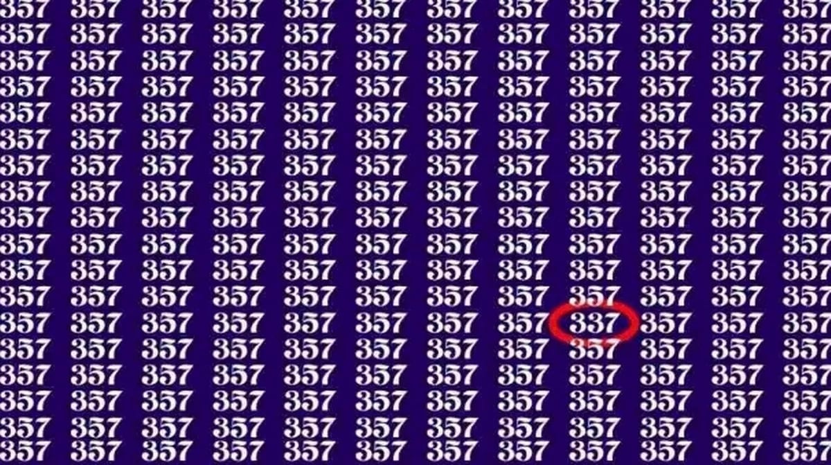 Šioje galvosūkio nuotraukoje, pilnoje skaičių 357, slypi vienintelis skaičius 337. Jūsų užduotis – jį greitai aptikti. Paslaptis slypi tame, kad reikia žiūrėti ne į skaičius, o į jų formą ir tarpus tarp jų.