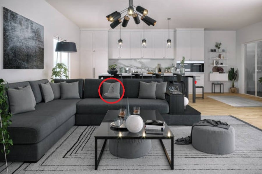 – Labiausiai konkreti užuomina: apžiūrėkite pilkas pagalves ant didelės sofos centre. Ar visos jos atrodo vienodos?