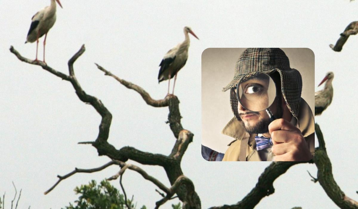 Pirma užuomina: nežiūrėkite į didžiuosius gandrus. Jie yra triukas, skirtas nukreipti jūsų žvilgsnį nuo tikslio.