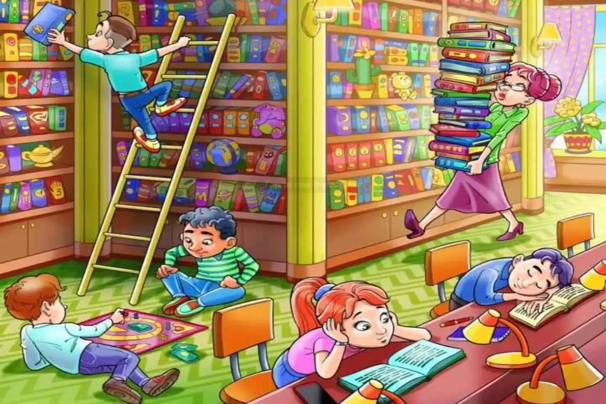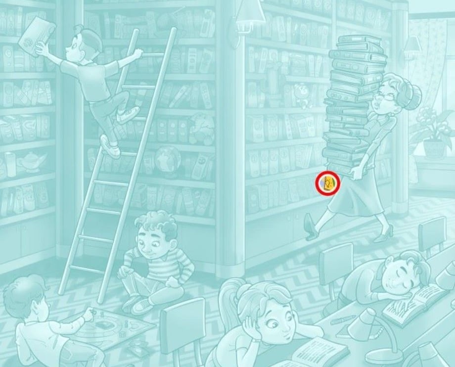 Įsivaizduokite, kad esate bibliotekos detektyvas. Jūsų užduotis – per 10 sekundžių surasti paslėptą lemputę šioje pilnoje veiklos scenoje. Vaikai skaito, žaidžia, o bibliotekininkas nešioja knygas. Iš pirmo žvilgsnio lemputės čia nėra. Bet ji tikrai yra! Tai tikras dėmesio ir staigmenos testas. Ar jūsų smegenys gali pralaužti vizualinį šabloną ir pamatyti tai, kas slepiasi akivaizdoje?
