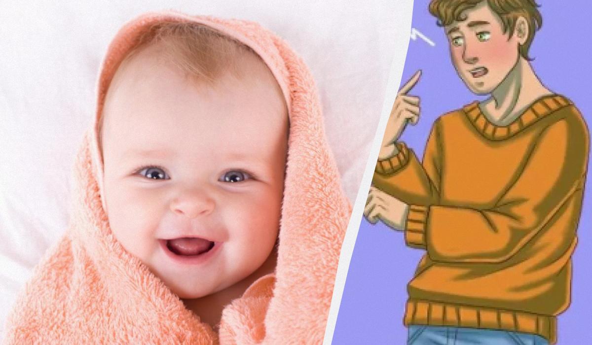 Prieš žiūrėdami į užuominas, sustokite. Pažiūrėkite į nuotrauką dar kartą. Ar pastebite ką nors neįprasto ant kūdikio ar vyrų? Gal kokį daiktą, ženklą ar raštą? Pabandykite patys, prieš skaitydami toliau.