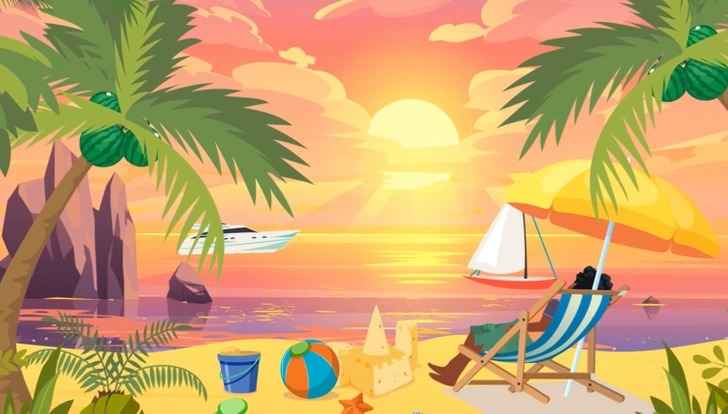 Šioje idilioje paplūdimio scenoje slypi viena absurdiška detalė, kuri visiškai paverčia realybės pojūtį. Norėdami ją rasti, reikia atsiriboti nuo bendro vaizdo ir susikoncentruoti į kiekvieną elementą atskirai.