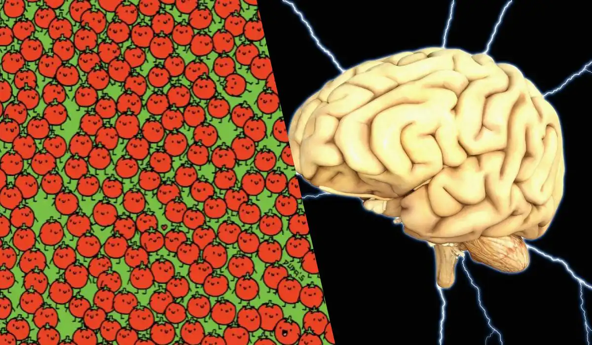 Ar kada nors bandėte rasti vieną kitokį elementą tarp daugybės visiškai vienodų? Vengrų menininko Gergely Dudas sukurtas šis vizualinis galvosūkis yra tobulas smegenų treniruoklis. Jame pavaizduotas didžiulis pomidorų laukas, tačiau trys iš šių „pomidorų“ iš tikrųjų yra obuoliai. Iššūkis – juos aptikti per 20 sekundžių. Tai atrodo paprasta, kol nepradedi žiūrėti. Pomidorai ir obuoliai čia pavaizduoti vienodos raudonos spalvos, todėl įprastas spalvų ieškojimas neveikia. Reikia įjungti dėmesį detalėms ir analizuoti formą.