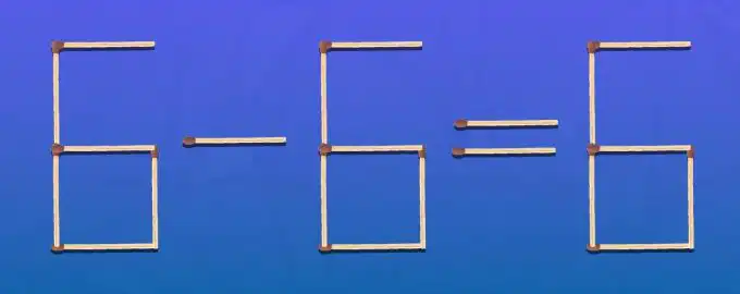 Galvosūkis su degtukais: lygtis 6-6=6 yra neteisinga. Jūsų užduotis – perkeldami tik vieną degtuką, padaryti ją teisinga. Pagalvokite, kaip galite pakeisti