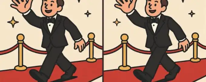 Šiame galvosūkyje jums reikia per 91 sekundę surasti tris skirtumus tarp dviejų iš pirmo žvilgsnio identiškų raudonu kilimu einančio vyro paveikslėlių.