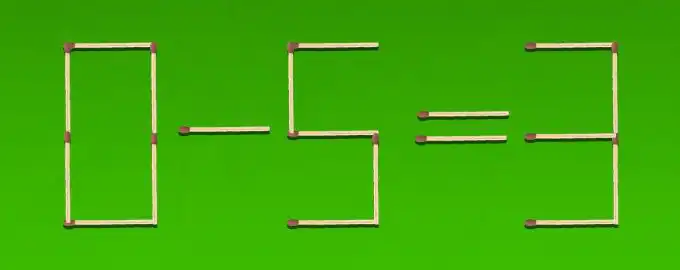 Šiame galvosūkyje reikia pataisyti neteisingą lygybę 0-5=3, perkeldami tik du degtukus. Sprendimas dažnai slypi ne matematinėje formulėje, o kūrybiškame